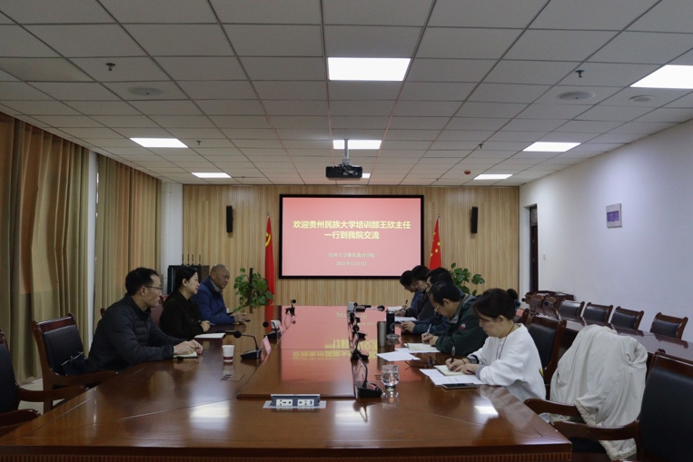 12月1日上午,贵州民族大学培训部主任王欣、副主任高冰等一行到访,与开云官网相关领导及负责人开展积极交流座谈。会议就新时代继续教育怎么办展开讨论。学院院长任康民、党委副书记丁韬出席会议,相关部门负责人参加会议。