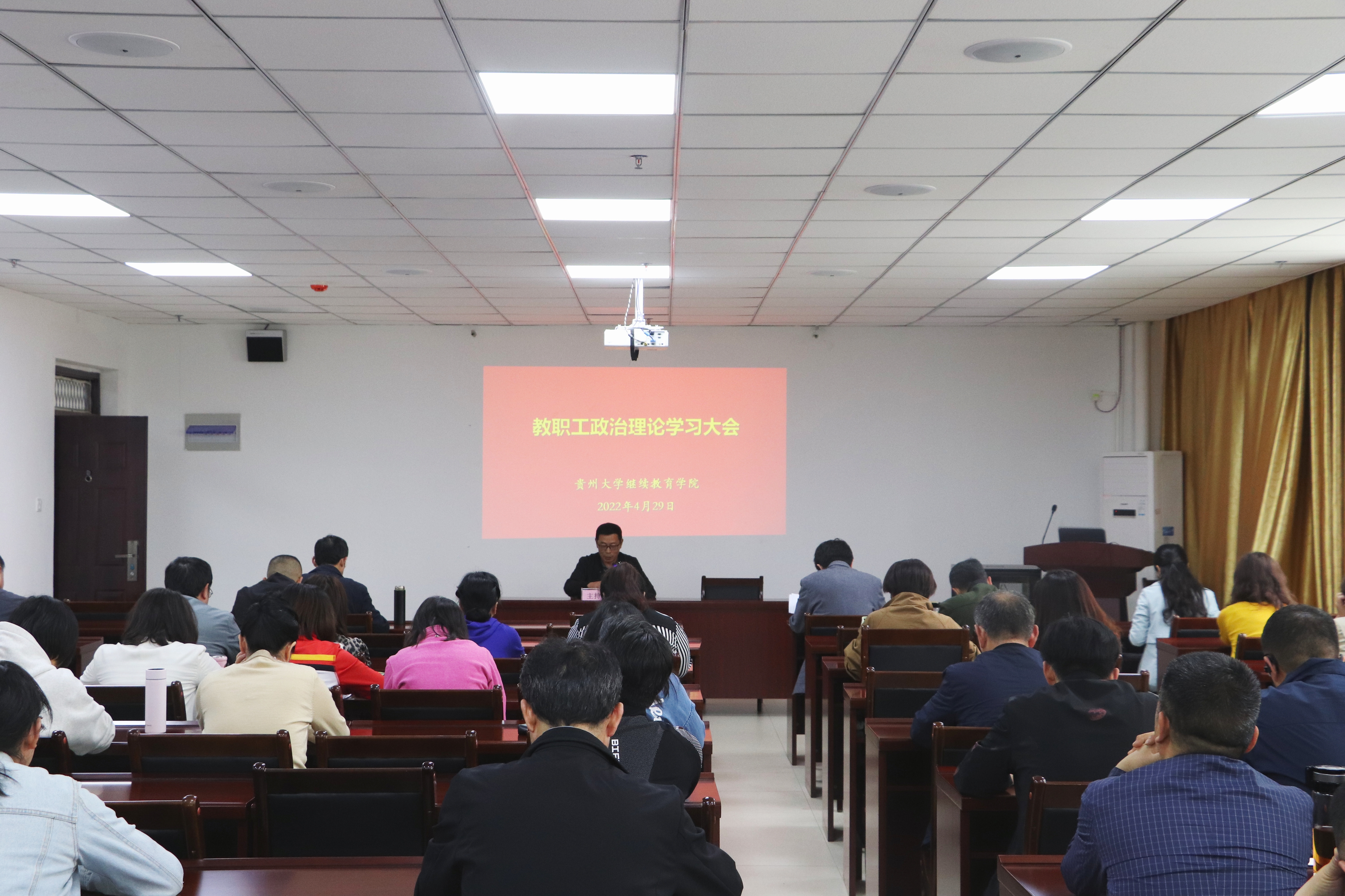 429日下午,学院教职工政治理论学习大会在306室举行,学院领导班子成员及全院教职工参加,党委副书记丁韬主持会议。