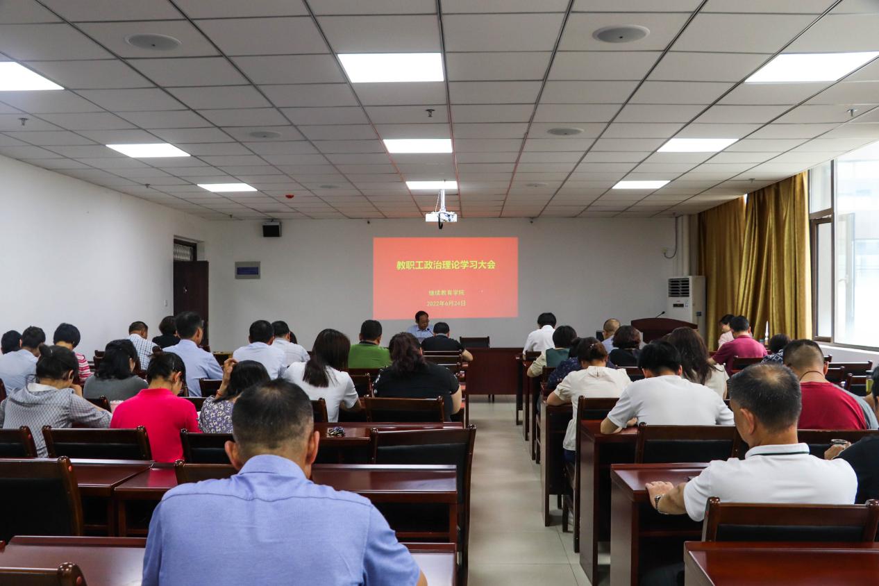 6月24日下午,开云官网在306教室召开教职工政治理论学习大会,学院领导班子成员及全院教职工参加,党委副书记丁韬主持会议。