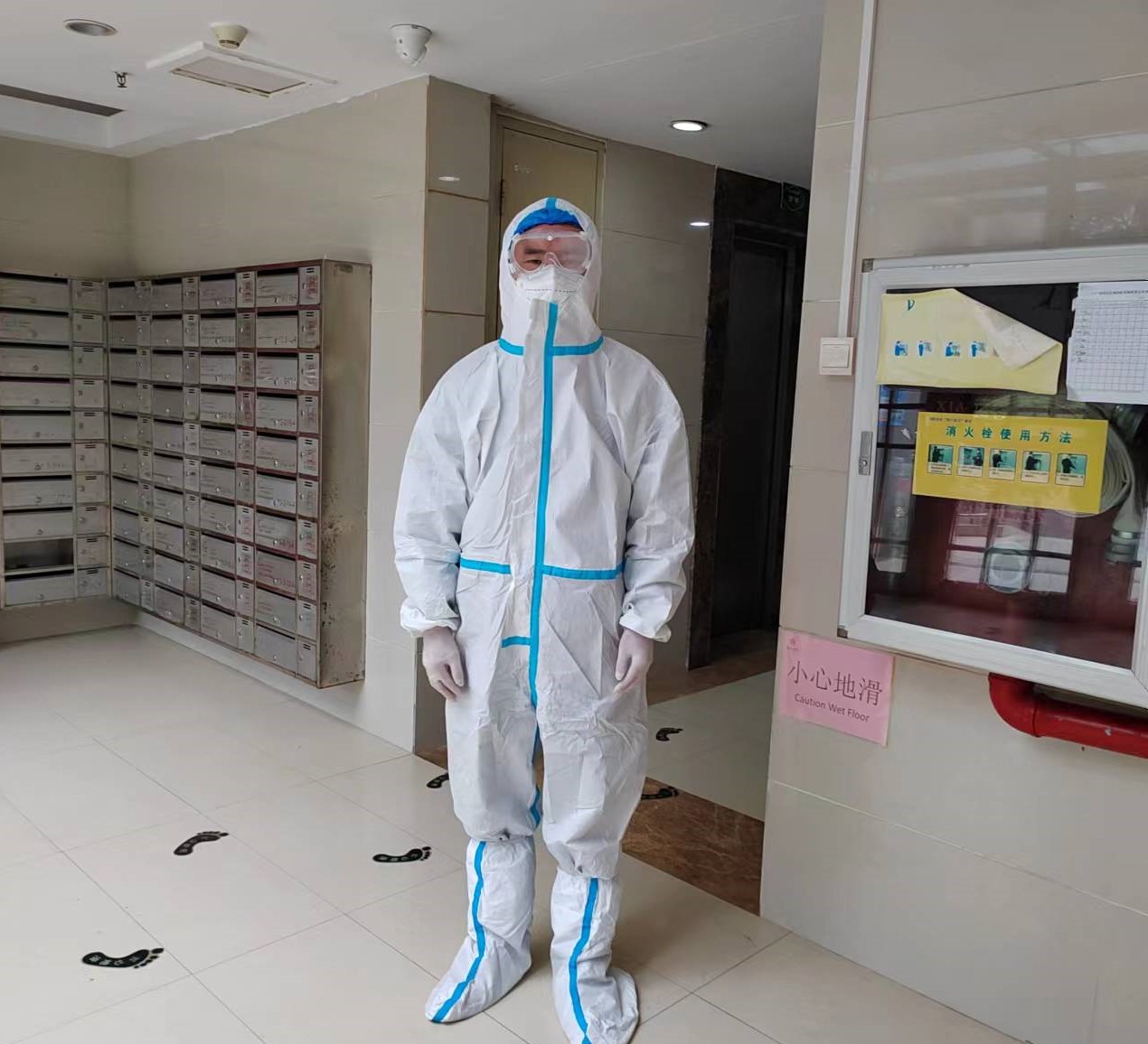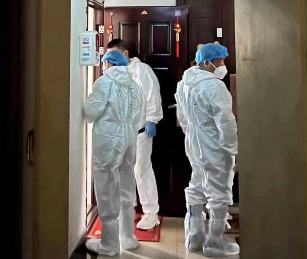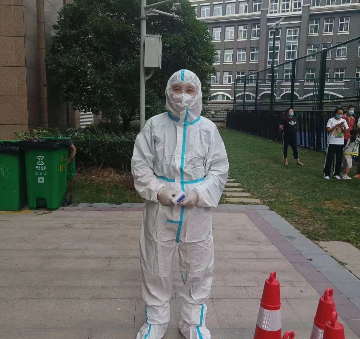 教职工陈田冰参加小区核酸检测组志愿服务,负责核酸采样时监测居民体温、检查健康码事务,在抗疫一线工作二十多天,坚持到小区解封。