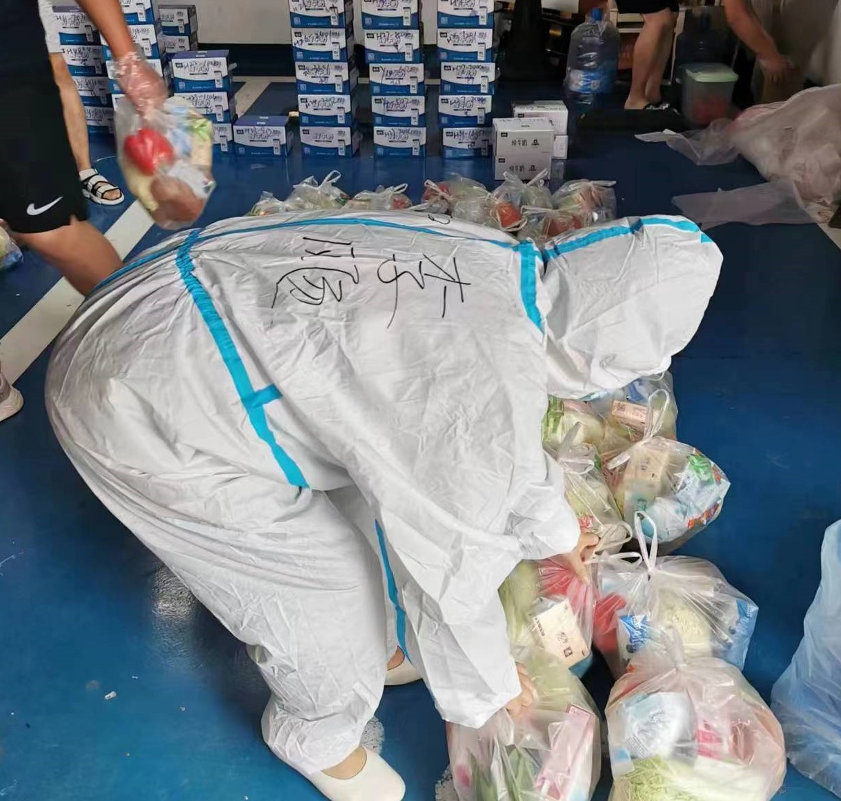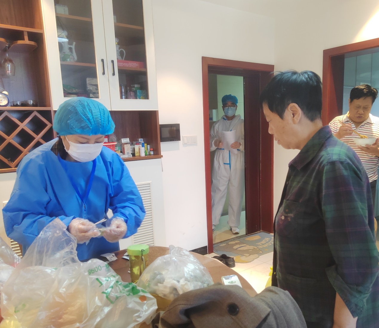 教职工陈景作为所在小区志愿者负责值守、分发社区协调的物资、维持核酸检测秩序等工作。她谈到在志愿服务中印象最深刻的一件事,“今天扫楼,发现一个独居老人,一次核酸检测都没做过,没有微信,最后实在没办法,只能绑定到我的手机上,多了一个不认识的亲人”。