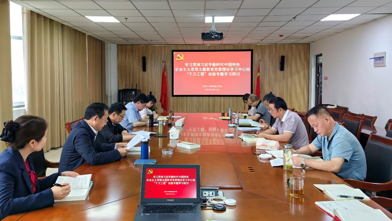 6月15日,学习贯彻习近平新时代中国特色社会主义思想主题教育学院党委理论学习中心组“千万工程”案例经验专题学习研讨在610会议室举行,院党委领导班子成员、正处级组织员出席会议,党支部书记、职能部门党员负责人列席会议,会议由党委书记白林立主持。本次会议主题是:学习运用好“浦江经验”“千万工程”案例经验,着力践行以人民为中心的发展思想。