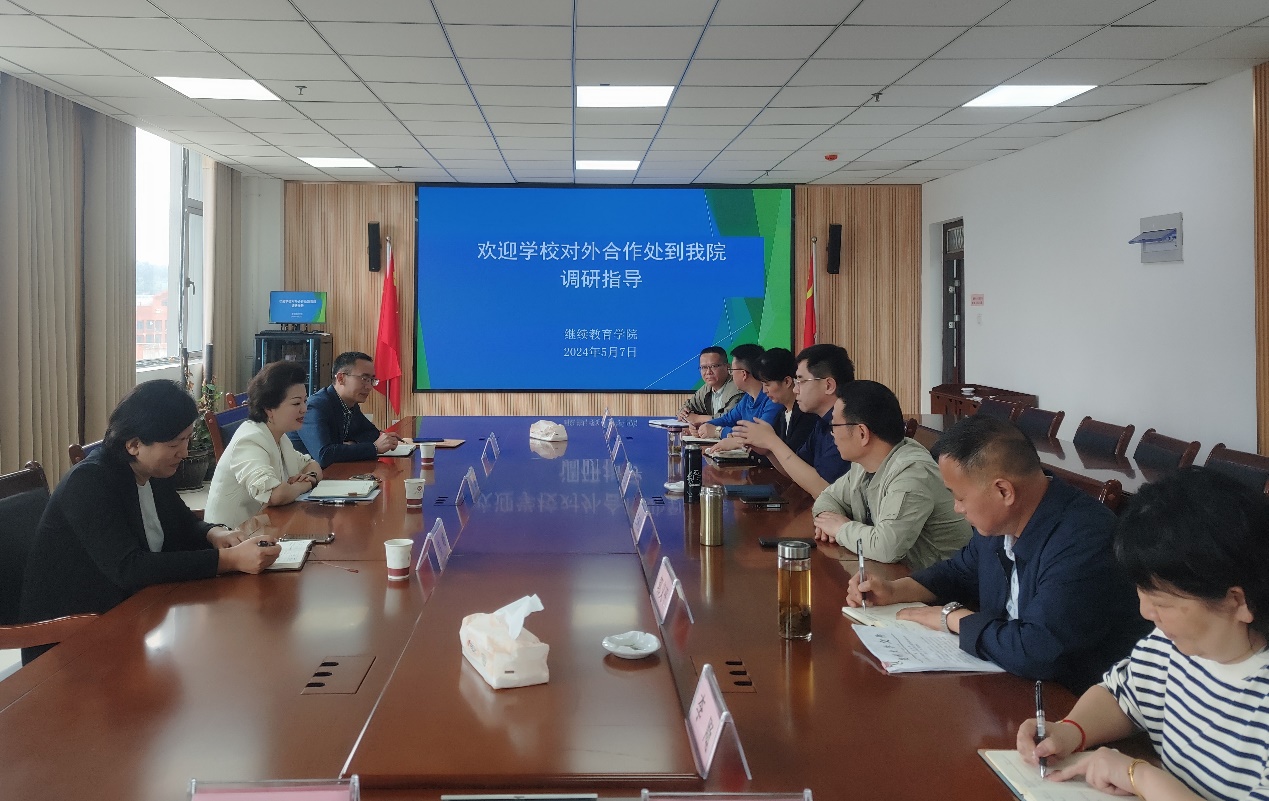 5月7日下午,校对外合作处处长刘颖、副处长赵鹏等一行三人到开云官网开展非学历继续教育工作调研指导,学院党委书记白林立、院长任康民、副院长谢黎及相关部门负责人参加,调研在610会议室开展。