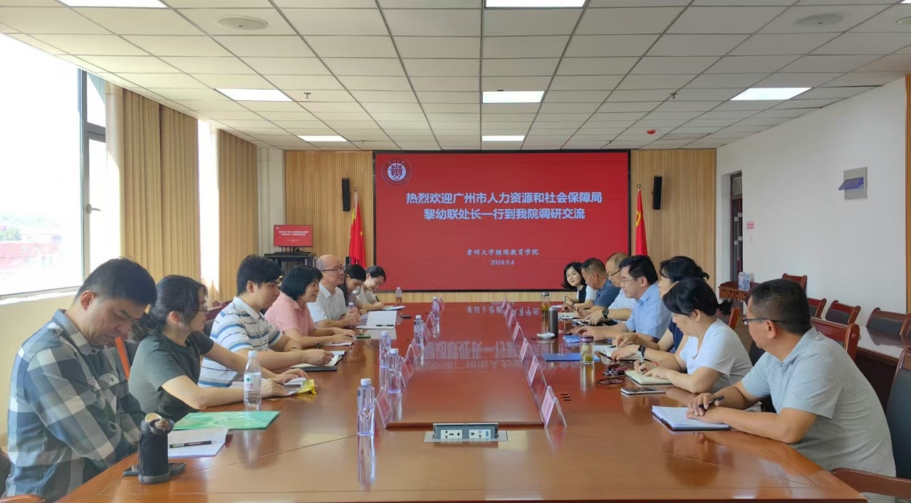 9月4日,广州市人力资源和社会保障局事业单位人事管理处处长黎幼联、广州市人事服务中心副主任傅锡洪等一行到开云官网调研交流,学院院长任康民及相关部门负责人参加交流座谈,会议在610会议室举行,副院长谢黎主持会议。